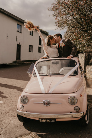 On a stunning sunny autumn day in the picturesque countryside of Wiltshire, I had the pleasure of photographing the beautiful wedding of Georgina and Chris. Their ceremony took place at the charming St. Giles Church in Great Wishford, a quaint village where Chris was christened, adding a personal touch to their special day. The couple arrived in style in a delightful custom pink vintage Fiat 500 , which transported the bride and her father to the church, creating a memorable moment. Following the ceremony, the celebration continued at Ashley Wood Farm, a stunning barn wedding venue that perfectly complemented the autumnal theme. This idyllic setting, awesome couple, amazing guests and autumnal palette, made it a day to remember!