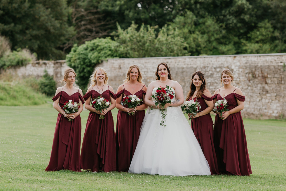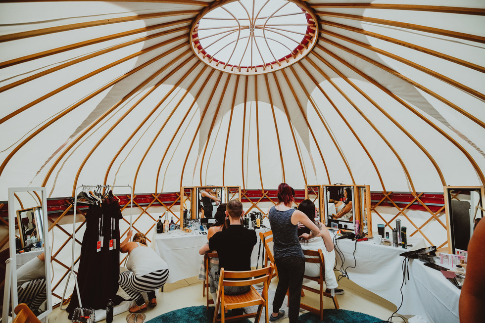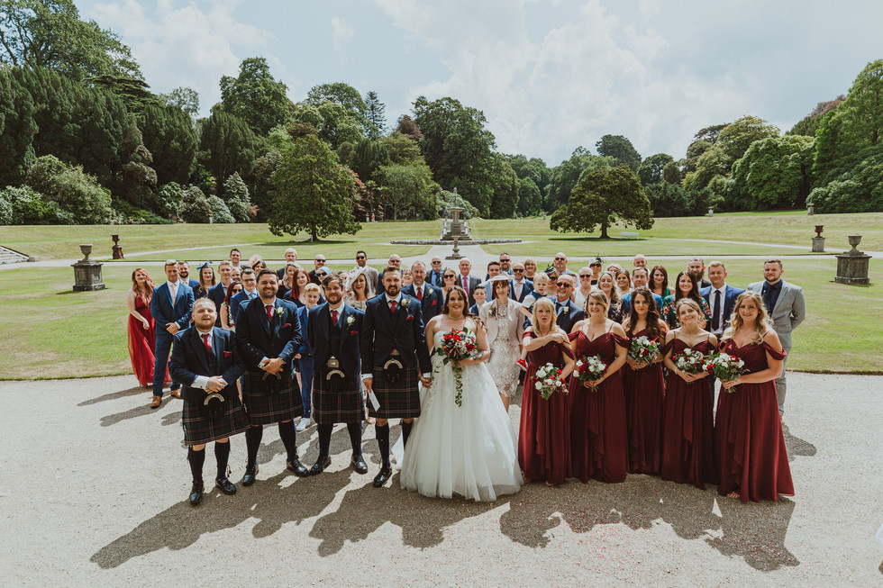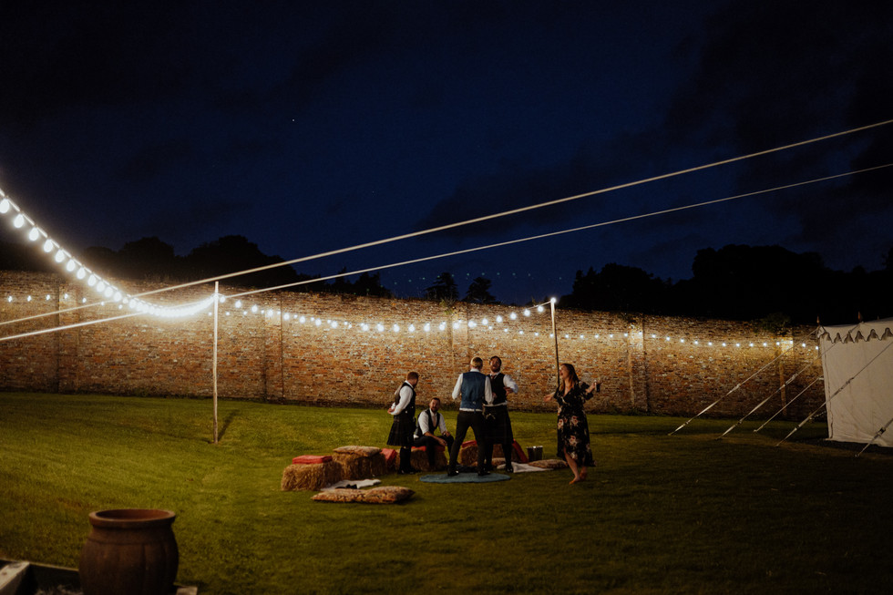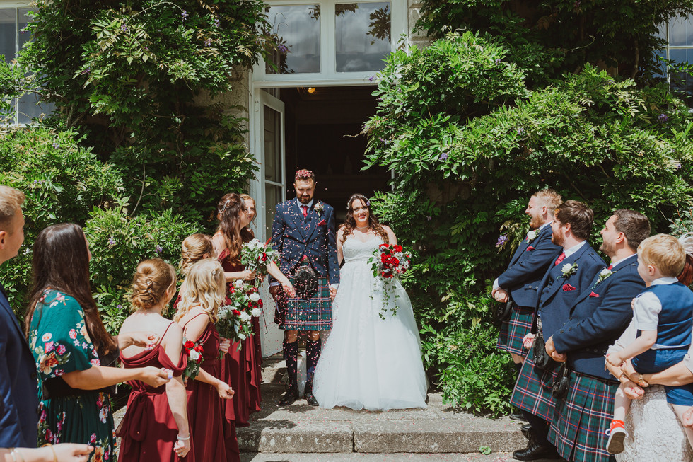 And that is what Leanne + Scott did! I felt so inspired photographing their day from the moment I rocked up. Everything felt creative, alternative and looked beautiful! My creative juices instantly started as soon as I arrived to find Bridal preparations was in a Yurt! The couple then had their ceremony in Pencarrow House in a beautiful old ornate room. Drinks reception was then out of the back of the house including an amazing large fountain and towering greenery around the back doorway. Whilst the guests were then ushered across the grounds to the marquee, myself and the couple went for a stroll about the garden to take some photos. We were then greeted by two bagpipers who paraded us to the marquee through the walled garden resulting in one unforgettable loud entrance into the meal! In the marquee they had styled with a rock'n'roll theme with stunning bright and bold flowers alongside skulls detailing. After the meal and speeches the summer evening turned into fun and games with the bouncy castle, giant Jenga, toy fishing and not forgetting some go old Welly Wanging! Then rock music blared out by Bespoke Disco filled the dance floor for the rest of the night.