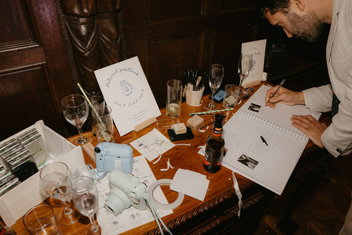 As the sun set, the party truly came alive. The dancefloor was busy and lively, with a live band playing soulful tunes that kept everyone moving. The warm colours of the evening light, combined with the glow from fire pits, created a cozy atmosphere. Guests enjoyed delicious pizza from a van parked outside. I also popped upstairs with the bride and groom, as a photo of them in the twin bath tubs was a must!